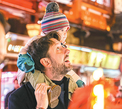 异邦搭客和孩子在豫园内观赏彩灯。 王 初摄(东谈主民视觉)