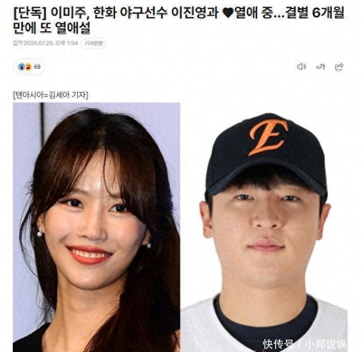 25日,某韩国媒体爆料称韩国女子组合Lovelyz出身的歌手兼综艺东说念主李好意思珠(30岁)与附庸于韩华老鹰队的棒球选手李镇英(27岁)正在热恋。